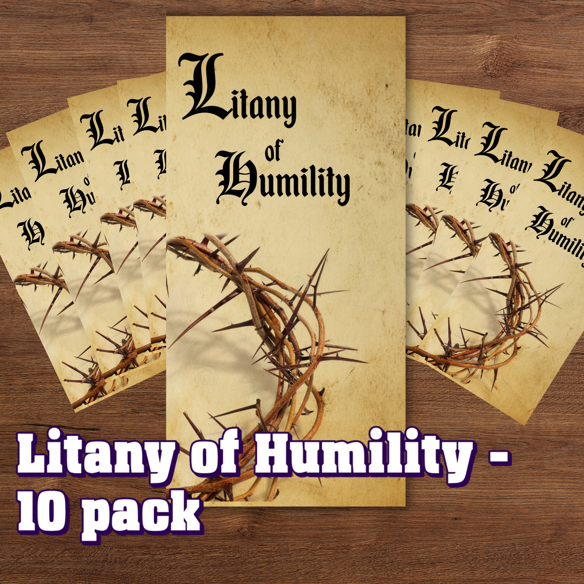 This Litany of Humility prayer card is printed on heavy card stock with a laminate finish. Folded size is 3" x 6".