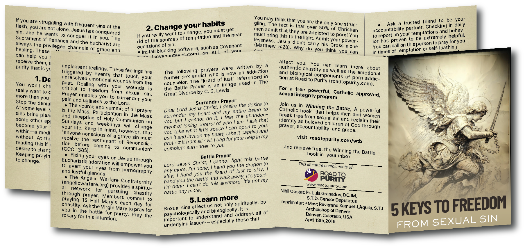 5 Keys to Freedom from Sexual Sin - 8pg mini pamphlet - ( CATHOLIC English version) Bulk from $25