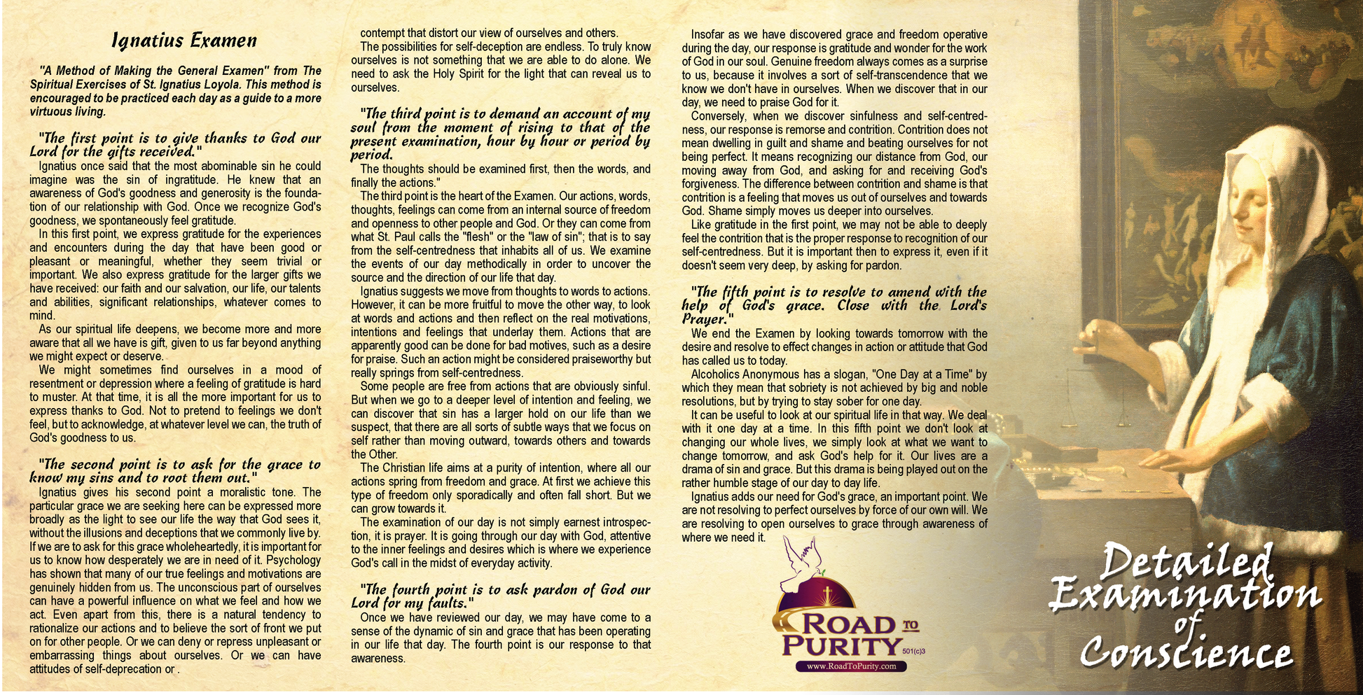 Also included is the Ignatius Examen which is “A Method of Making the General Examen" from The Spiritual Exercises of St. Ignatius Loyola. This method is encouraged to be practiced each day as a guide to a more virtuous living.