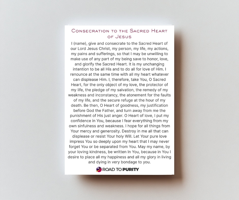 I (name), give and consecrate to the Sacred Heart of our Lord Jesus Christ, my person, my life, my actions, my pains and sufferings, so that I may be unwilling to make use of any part of my being save to honor, love, and glorify the Sacred Heart. It is my unchanging intention to be all His and to do all for love of Him. I renounce at the same time with all my heart whatever can displease Him. I, therefore, take You, O Sacred Heart, for the only object of my love, the protector of my life, the pledge of my salvation, the remedy of my weakness and inconstancy, the atonement for the faults of my life, and the secure refuge at the hour of my death. Be then, O Heart of goodness, my justification before God the Father, and turn away from me the punishment of His just anger. O Heart of love, I put my confidence in You, because I fear everything from my own sinfulness and weakness. I hope for all things from Your mercy and generosity. Destroy in me all that can displease or resist Your holy Will. Let Your pure love impress You so deeply upon my heart that I may never forget You or be separated from You. May my name, by your loving kindness, be written In You, because in You I desire to place all my happiness and all my glory in living and dying in very bondage to you.