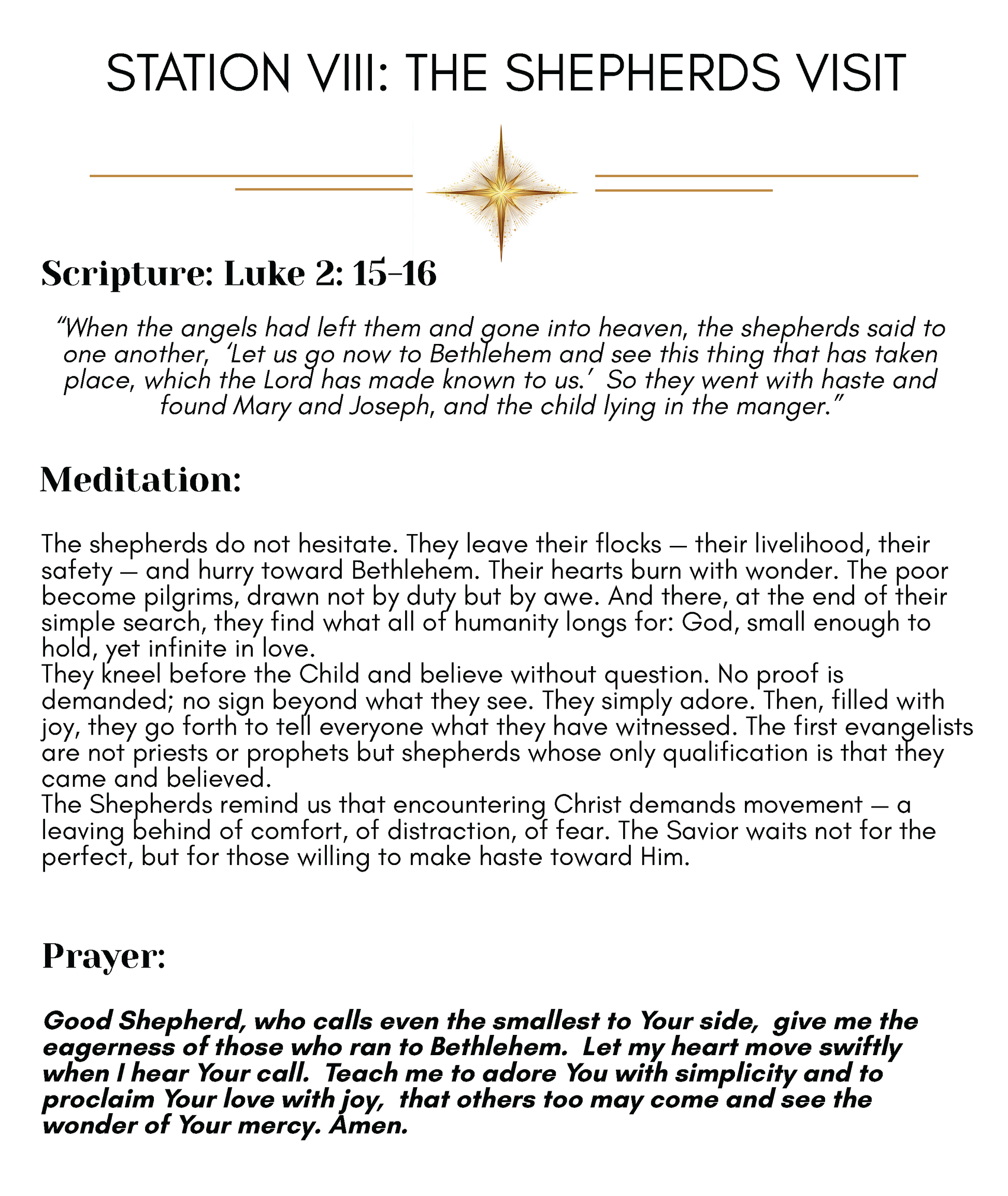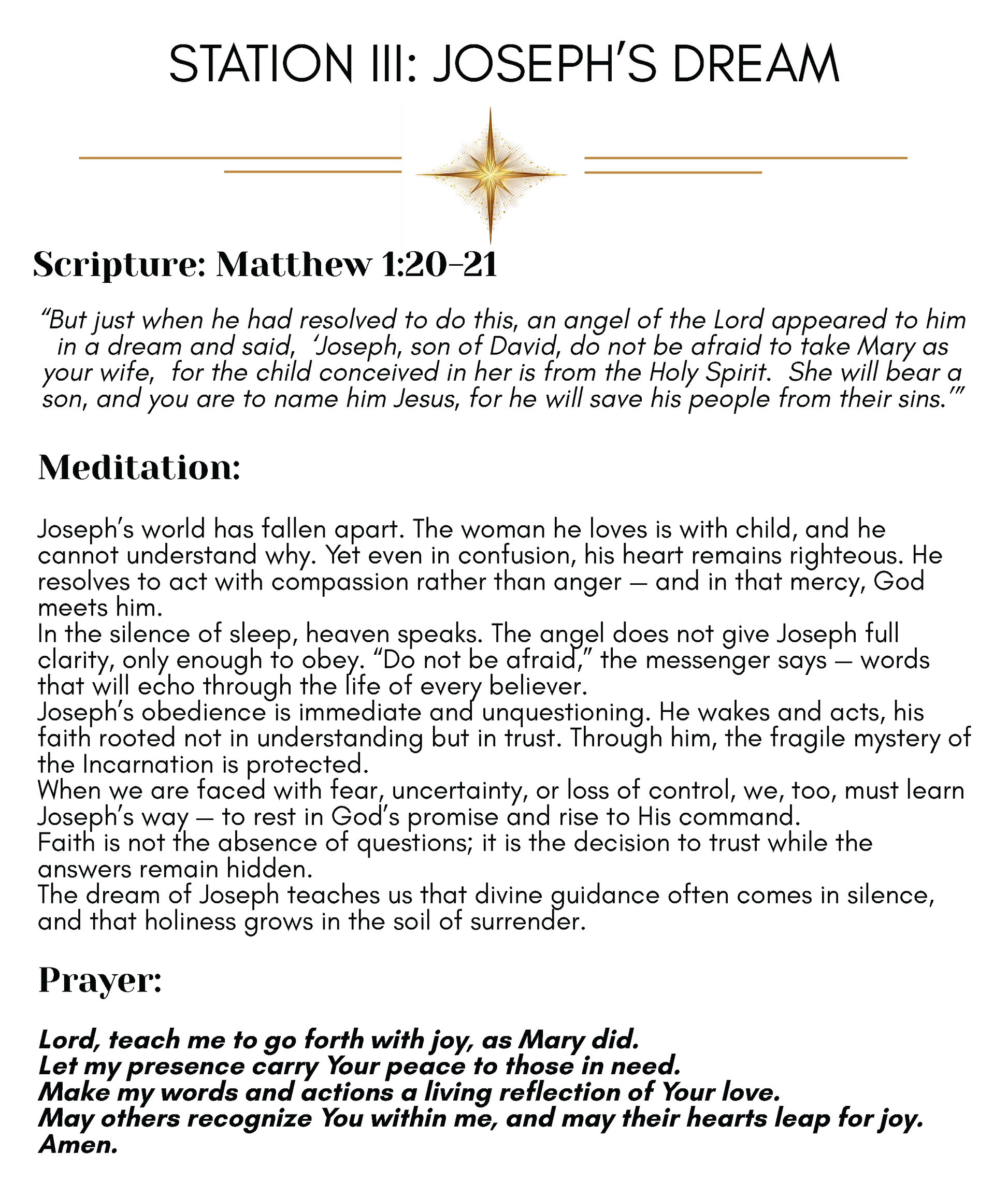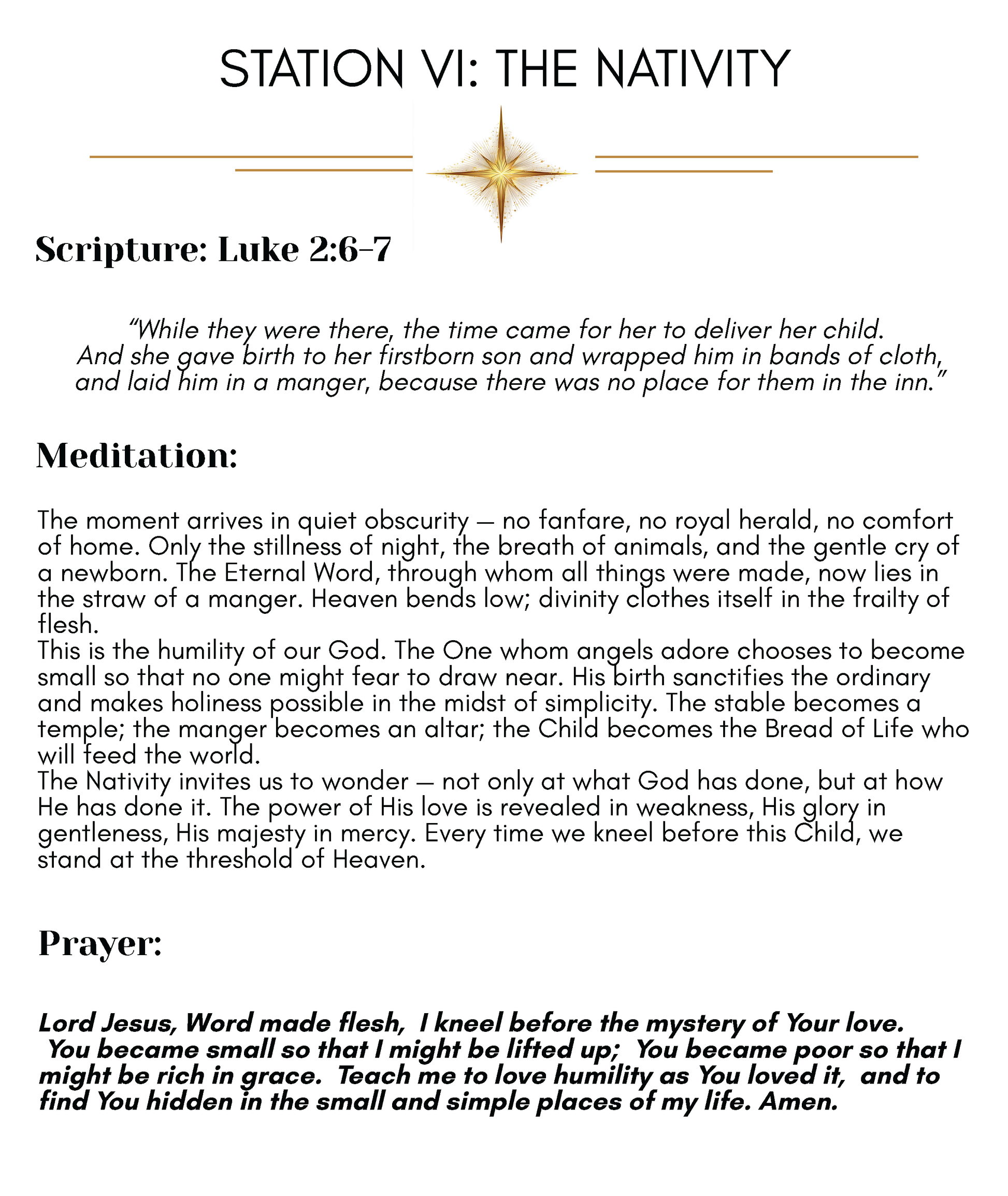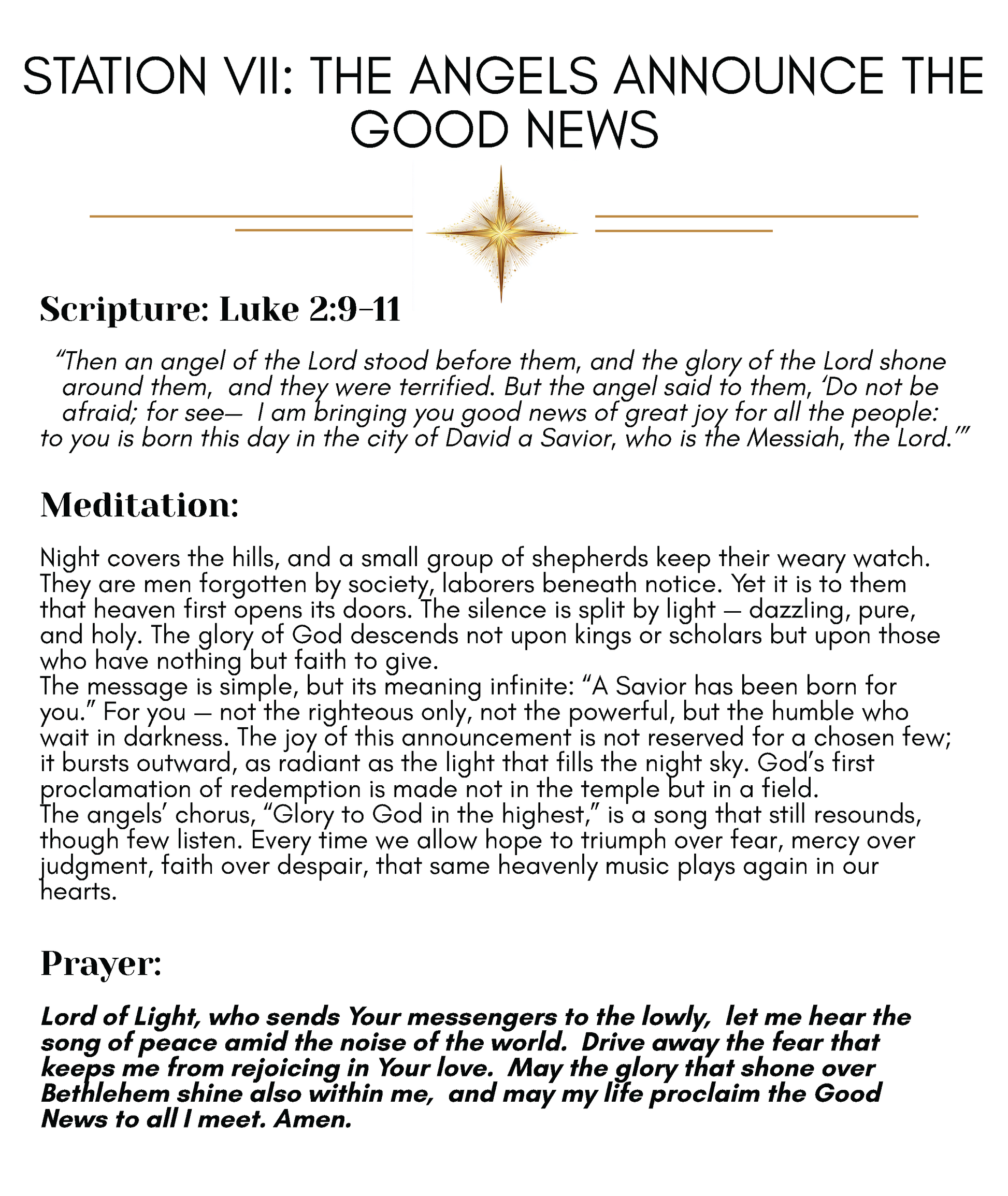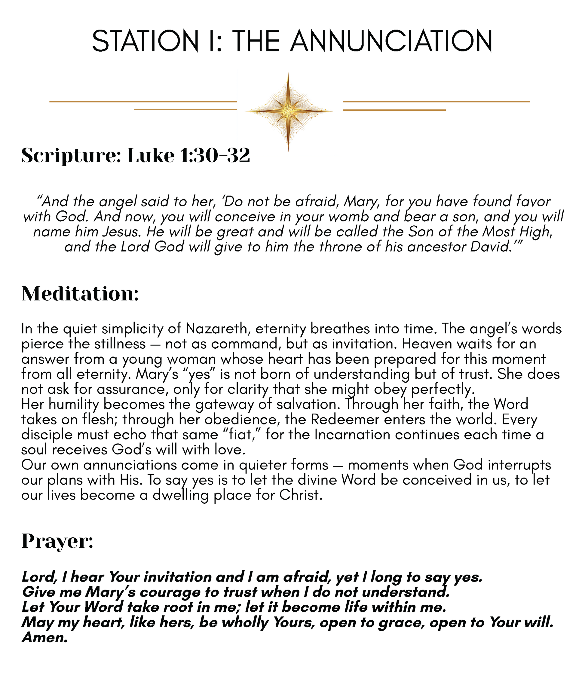 Each meditation draws you deeper into the wonder of God made flesh — a journey of trust, humility, and divine love unfolding in ordinary places. Through Scripture, reflection, and prayer, you will rediscover the timeless truth that Heaven has come close, and that the same Light which once shone over Bethlehem still seeks to dwell within every willing heart.