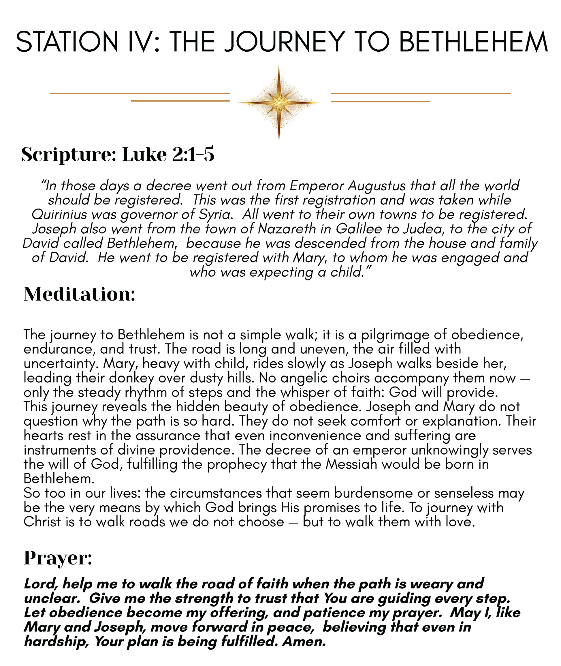 Across twelve sacred stations, this beautifully written devotional invites you to walk alongside Mary and Joseph from the angel’s first message to the adoration of the Magi.