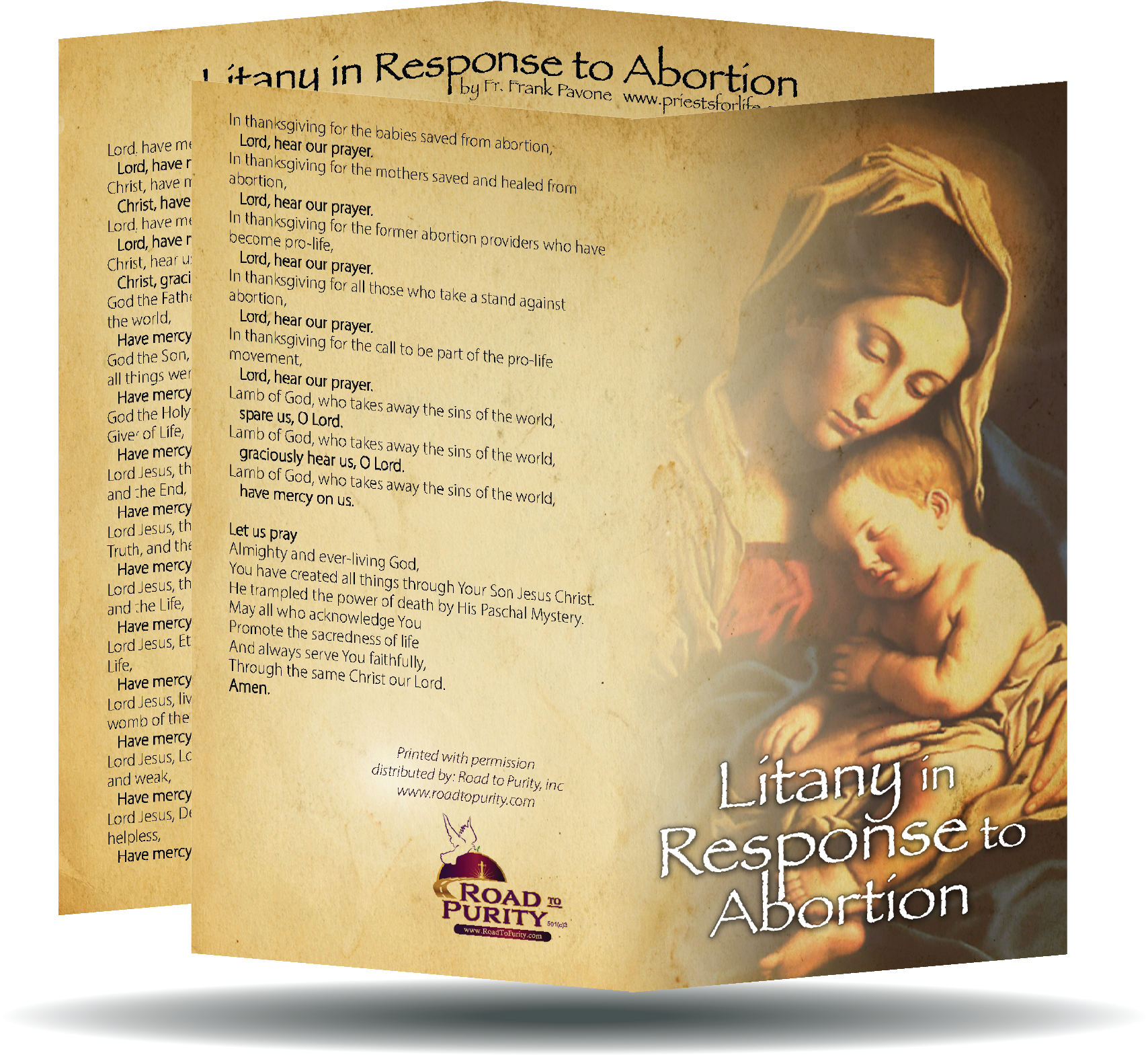 This Litany in Response to Abortion prayer was written by Fr Frank Pavone the director of Priests for life. This prayer card is printed on heavy card stock with a laminate finish. Folded size is 3" x 6".