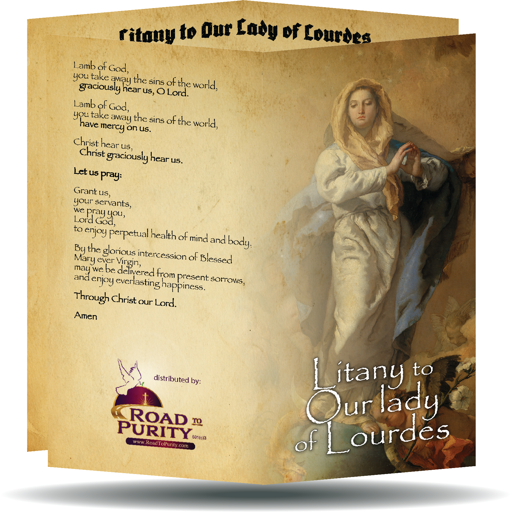 Litany to Our Lady of Lourdes - Prayer Card / 3" x 6" folded