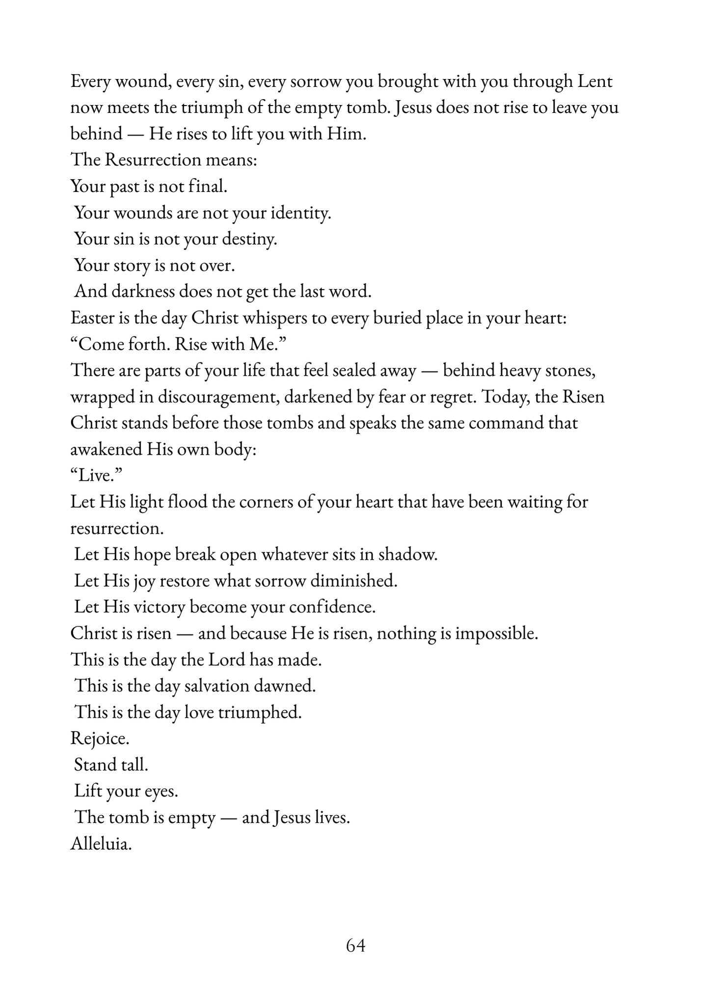 Throughout Lent, Return to Me helps you enter more fully into the call of conversion, preparing your heart for the saving mysteries of the Passion. The journey then deepens as the book leads you into the sacred days of the Paschal Triduum, offering richer context and focused meditations for Holy Thursday, Good Friday, Holy Saturday, and Easter Sunday—guiding you from sacrifice and surrender into the joy of the Resurrection.