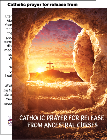 Catholic Prayer for Ancestral Curses - Holy card is printed on heavy card stock with a laminate finish. Size is 2 1/2" x 3 1/2" (credit card size).